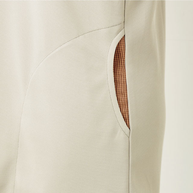 ラウンドした脇ポケットが優しい印象