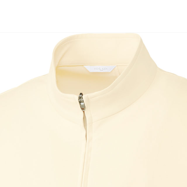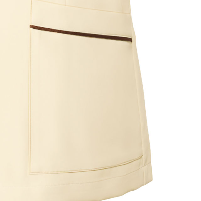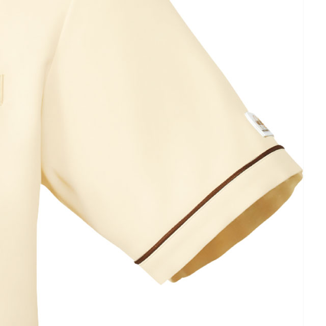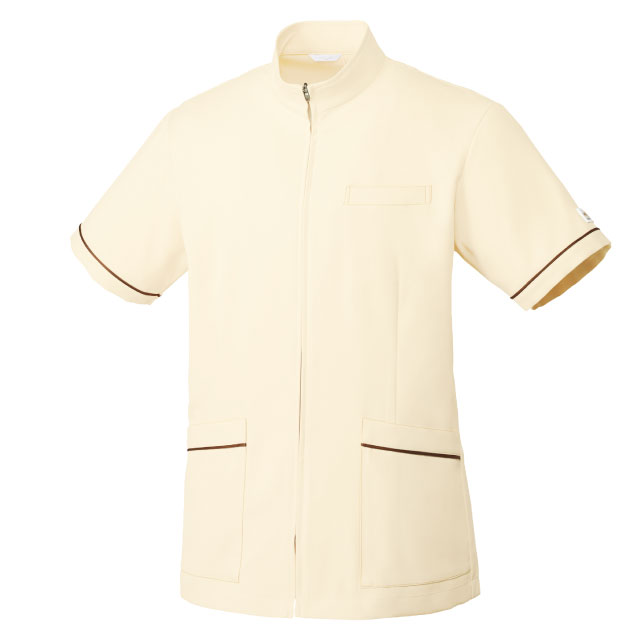 キッチリ感のあるスタンドカラーのデザインが印象的な優しい色合いのクリームのジャケットで、さりげない気配りのあるおもてなしの装いにすると、優しい心遣いのあるさりげない献身的な立居振舞いとなり、思いやりの心をお届けするケア・介護スタイルになります。